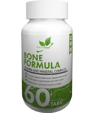Bone Formula — витаминно-минеральный комплекс, который устраняет дефицит важных микроэлементов (кальций, магний и цинк). Кальций способствует укреплению костной ткани и участвует в передаче нервных импульсов мышечным волокнам. Магний — непосредственный участник энергетического и углеводного обмена, также он необходим для улучшения кровоснабжения сердечной мышцы. Цинк очищает от токсинов, выводит тяжелые металлы, нормализует состояние волос и кожи, замедляет старение клеток. Витамин D регулирует усвоение кальция, магния и фосфора, что необходимо для поддержания костной ткани. Ускоряет процесс обмена веществ, способствует всасыванию в кишечнике соединений этих химических элементов.